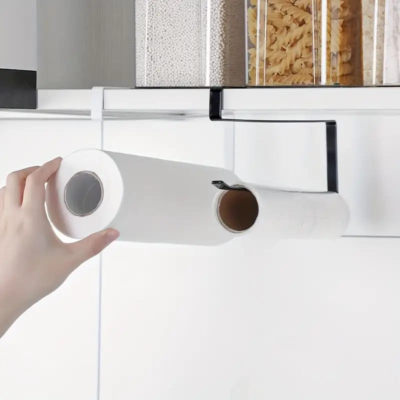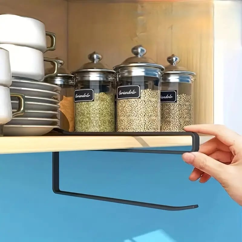 1pc Metal Cabinet Storage Hook for Towels and Tissues, No-Drill Wall Mount, Multi-Use Kitchen & Bathroom Organizer