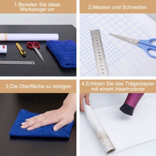 - Glossy Marble Wallpaper USE – Kitchen counter, furniture, notebook, drawer, crafts, bedside table, bookcase, door even wall. Suitable for smooth and flat surfaces. Marble Paper is beautiful which makes it a must-have product whenever you want to restore old furniture. Please use it on a smooth, dry and smooth countertop. Rough and wet countertops will affect the viscosity of the product.