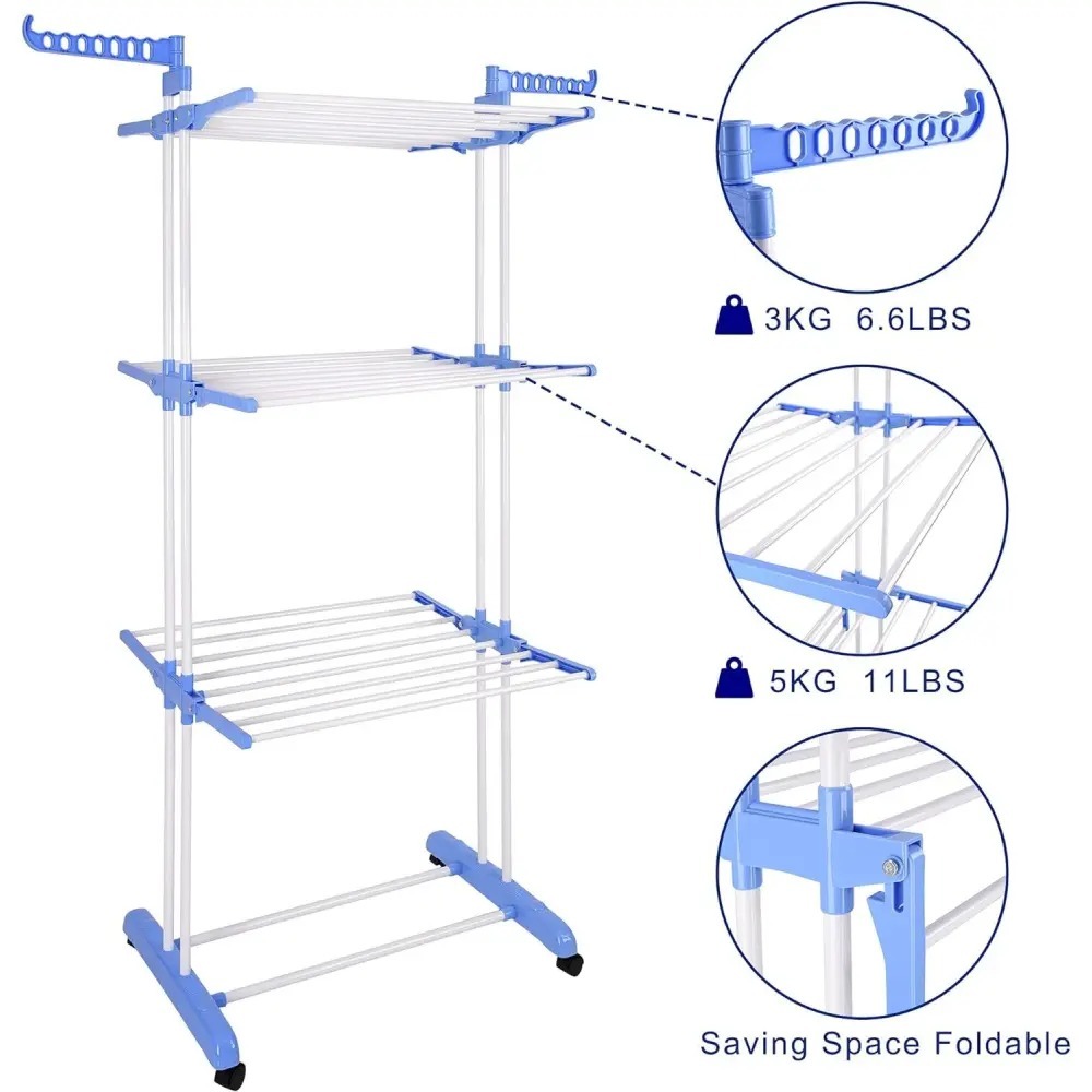 3 Tier Foldable Clothes Drying Rack (40kg)