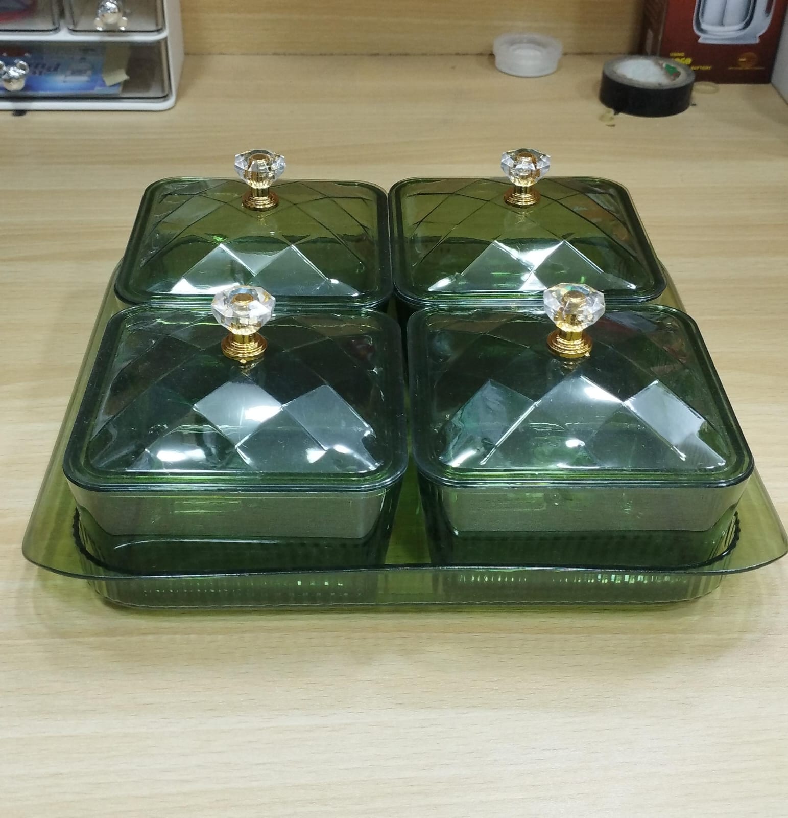 Be the first to review “4 Grids Divided Snack Serving Bowl With Lid And Tray Dried Fruit Plate”