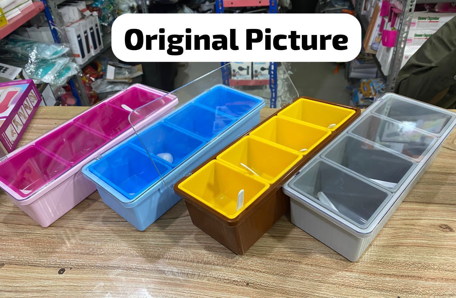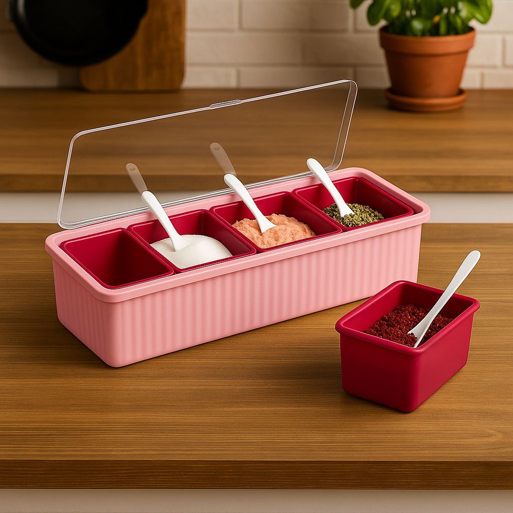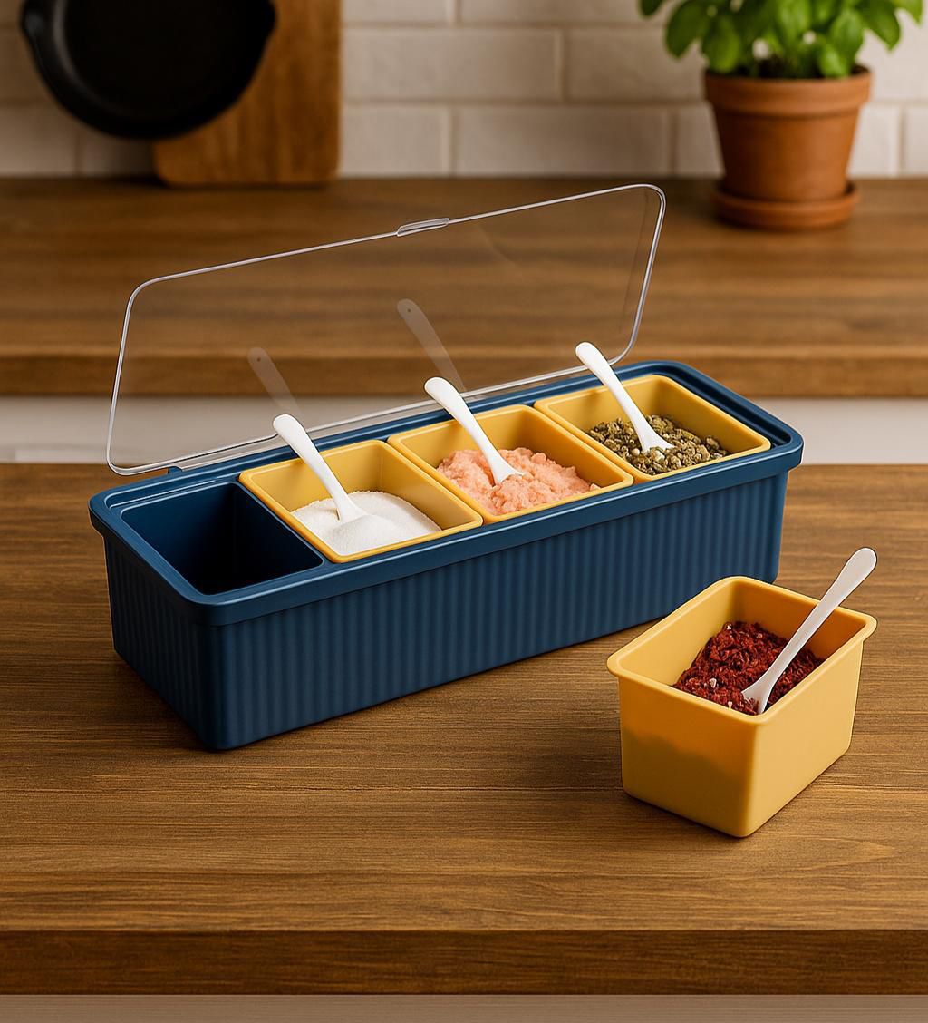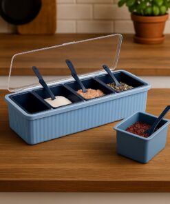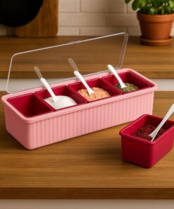 Be the first to review “4pcs Detachable Spice/Masala Rack/Box with Spoon and Transparent LID Cover”