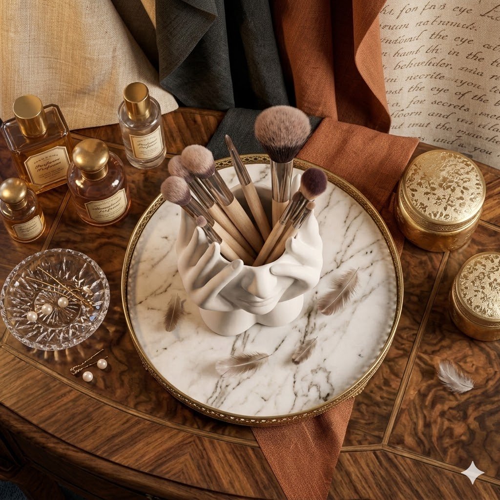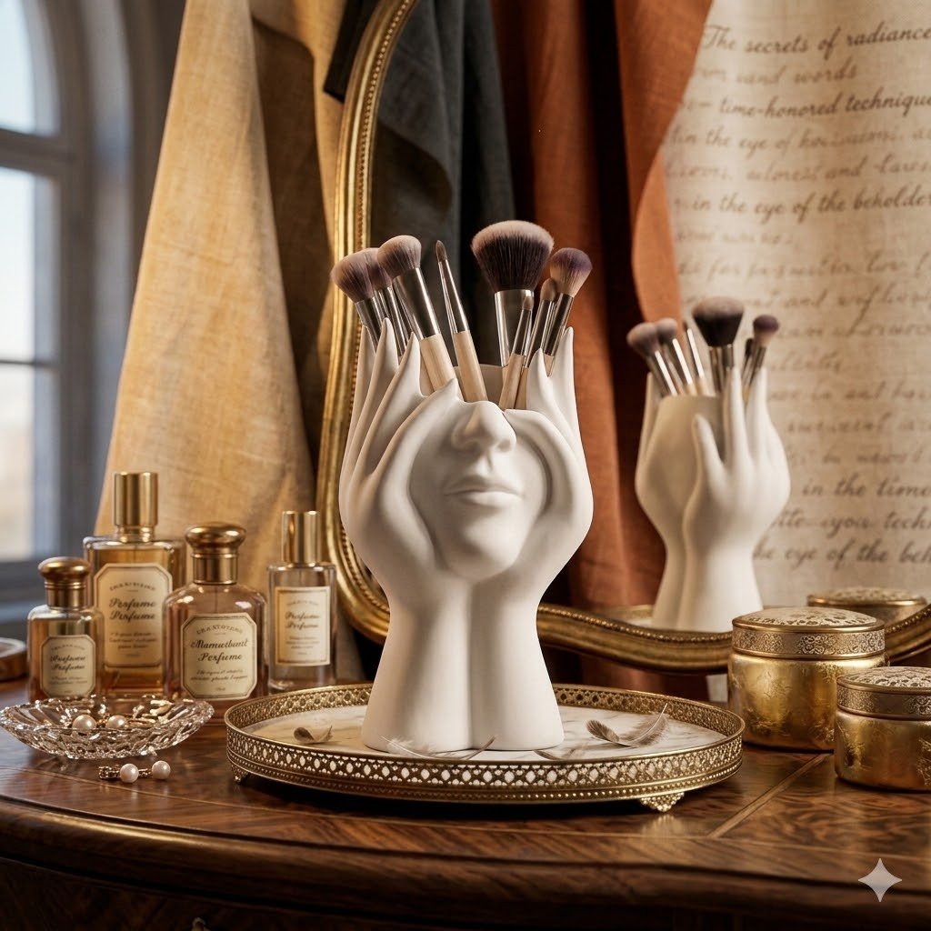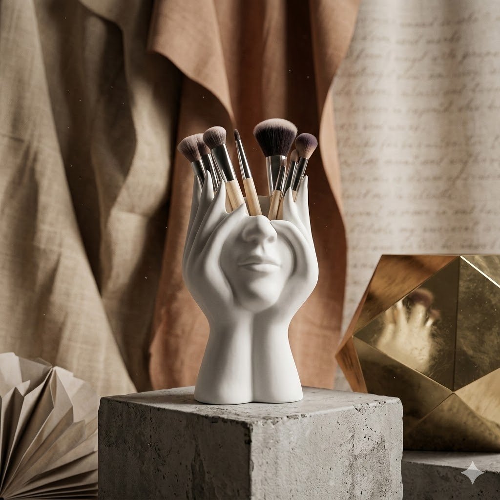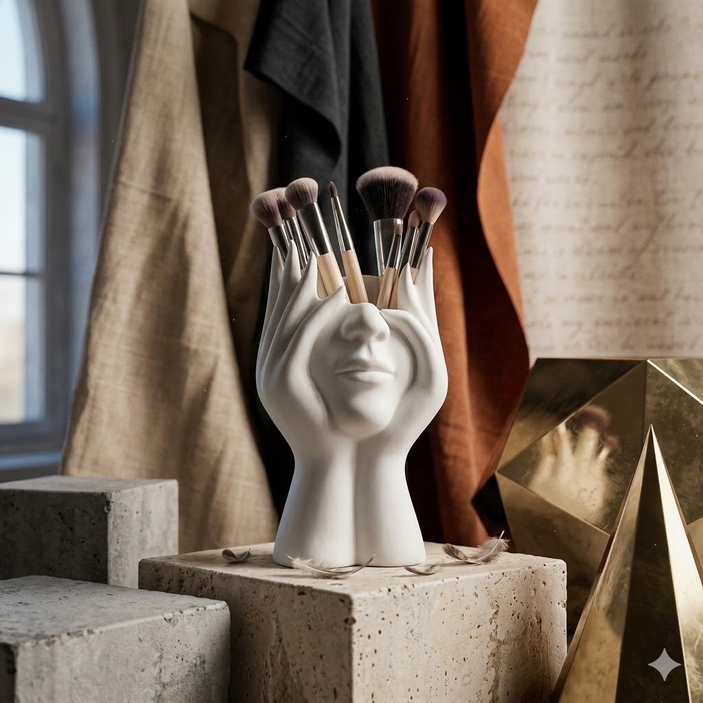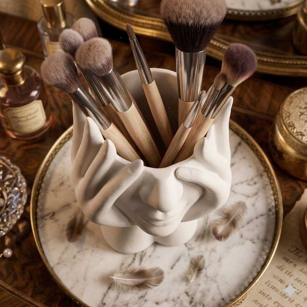 Designed as both a makeup brush holder and decorative flower vase,Its eye-catching design instantly upgrades table decor while keeping brushes tidy