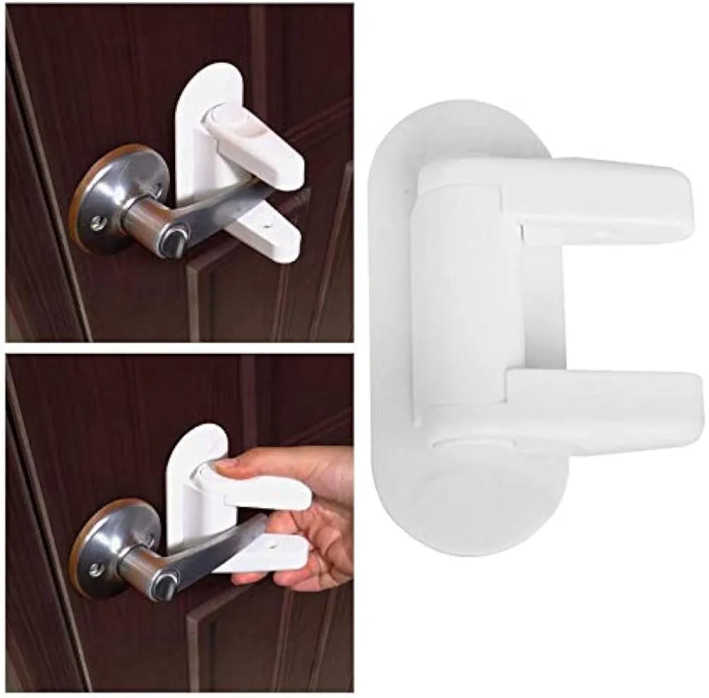 Door Lever Lock, ABS Child Safety Door Lock with 3M Adhesive, Anti-Lockout Child Proof Locks for Bedroom, Bathroom, Kitchen