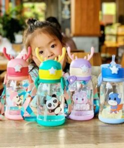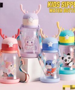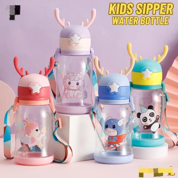 Kids Sipper Water Bottle with Straw Strap And Stricker Sipper Water Bottle Plastic Bottle