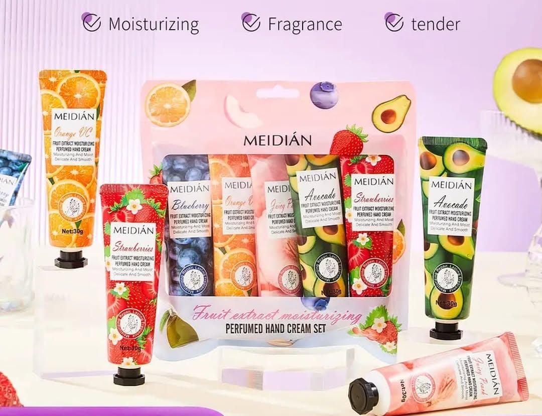 Be the first to review “Meidian Fruit Extract Moisturizing Perfumed Hand Cream Set (Pack of 5)”