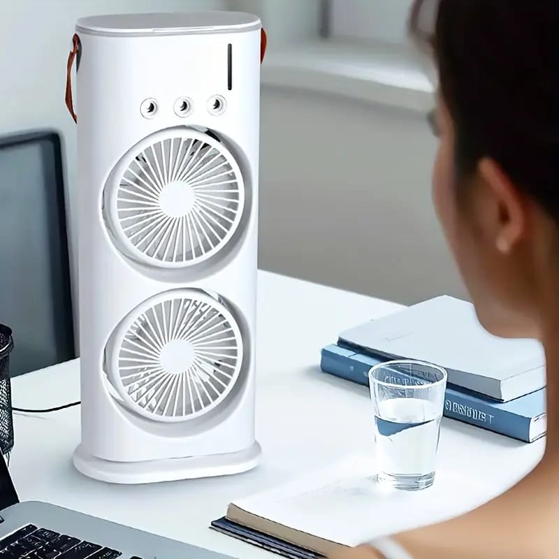 Rechargeable Double Rotating Cool Spray Fan Air Conditioning Fan, Mini Evaporative Air Cooler, Double Mouth Air Conditioning Fan with Mist Spray | Air Cooling Fan for Desk, Nightstand, or Coffee Table
