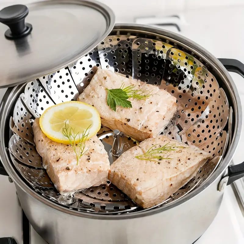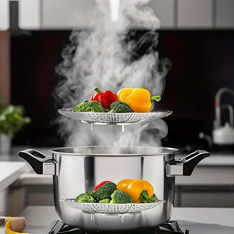 Stainless Steel Folding Steamer Basket – Multifunctional Oven, Air Fryer & Steamer Rack for Vegetables, Meat, Fruit