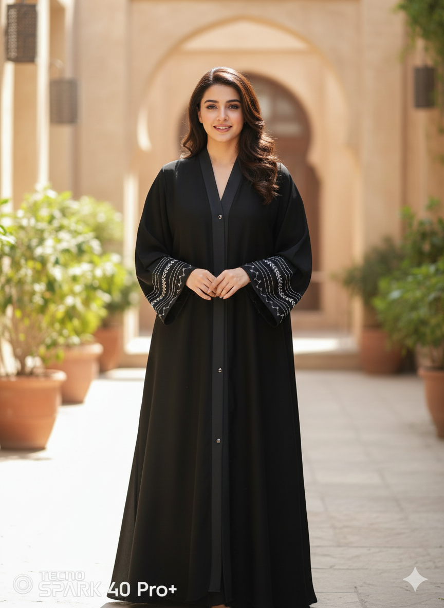 Discover the epitome of sophistication with our Maroon Velvet Royale Abaya. Drenched in a rich, deep dark maroon hue, this masterpiece is designed for the woman who commands presence. The heavy texture of the base fabric combined with plush velvet detailing makes it a must-have for your luxury collection.