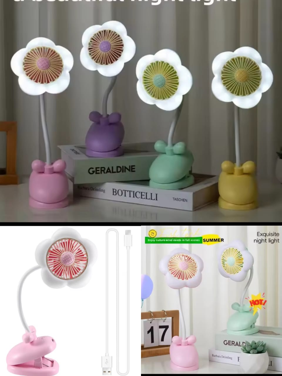 Be the first to review “USB Rechargeable Clip on Fan Cute Design Flower Clip on Fan 360° Rotate Cooling Fan with LED”